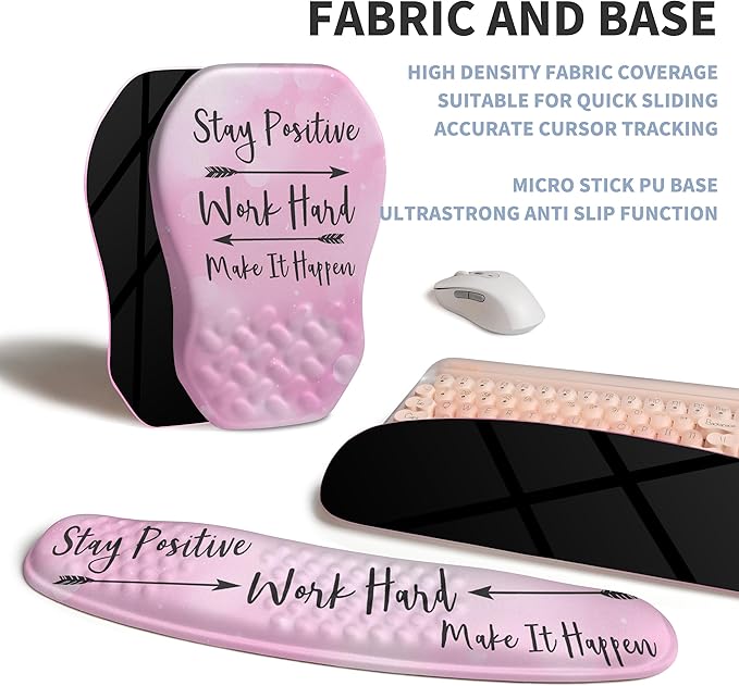 2-in-1 Ergonomic Set, Wave Keyboard Wrist Rest and Massage Slope Mouse Pad Wrist Support, Rebound Memory Foam for Relieve Carpal Tunnel Syndrome and Wrist Pain (Stay Positive)