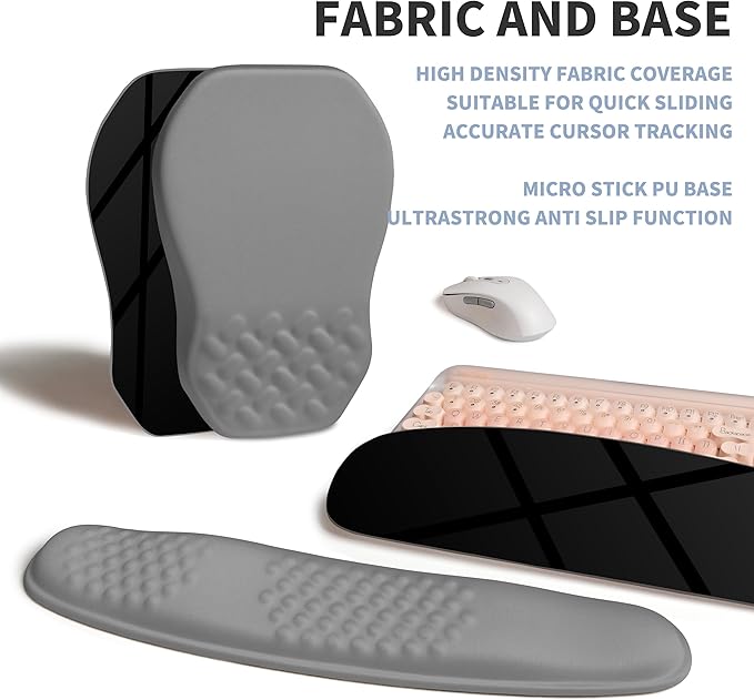 - 【Ergonomic Set】Wave Keyboard Wrist Rest x1(17.1x3.7 inch, 435x95mm) and Massage Slope Mouse Pad Wrist Support x1(11.8x7.9 inch, 300x200mm), ergonomic curvature design optimization, more in line with the natural position of the shoulder during work, alleviates carpal tunnel syndrome and wrist pain