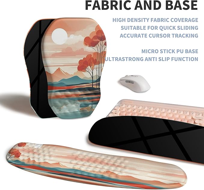- 【Ergonomic Set】Wave Keyboard Wrist Rest x1(17.1x3.7 inch, 435x95mm) and Massage Slope Mouse Pad Wrist Support x1(11.8x7.9 inch, 300x200mm), ergonomic curvature design optimization, more in line with the natural position of the shoulder during work, alleviates carpal tunnel syndrome and wrist pain