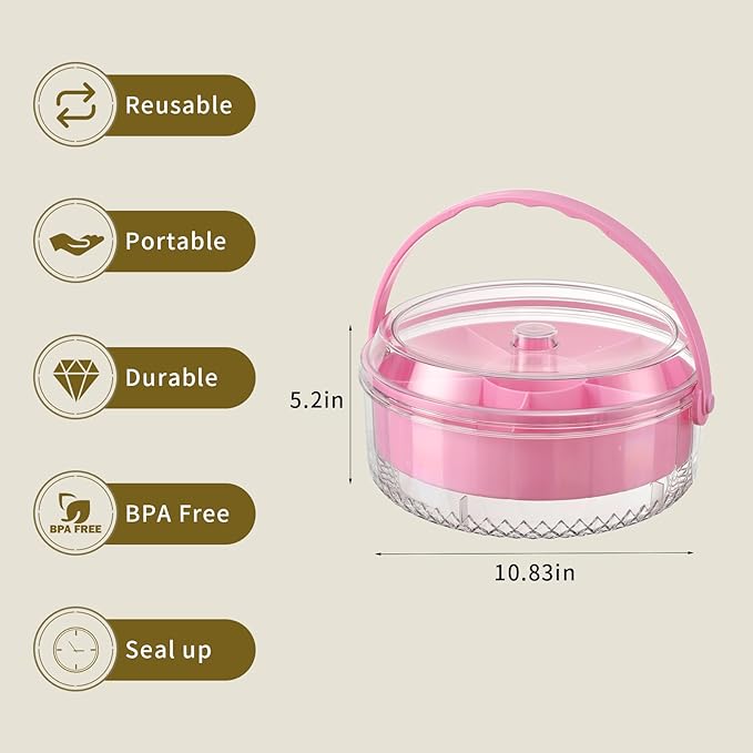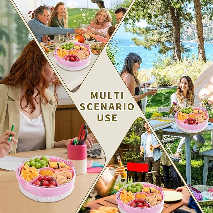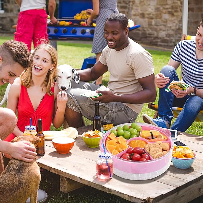 Divided Chilled Serving Tray for Parties,Ice Chilled Party Platter,Ice Serving Bowl with Lid and Handle,Charcuterie Serving Board,Cold Dish Dip for Fruit Seafood Vegetable Shrimp Cocktail Appetizer...