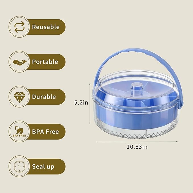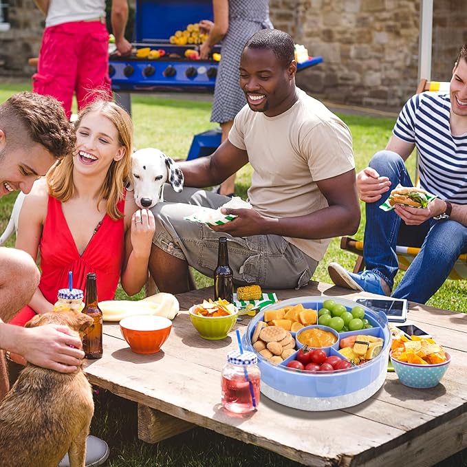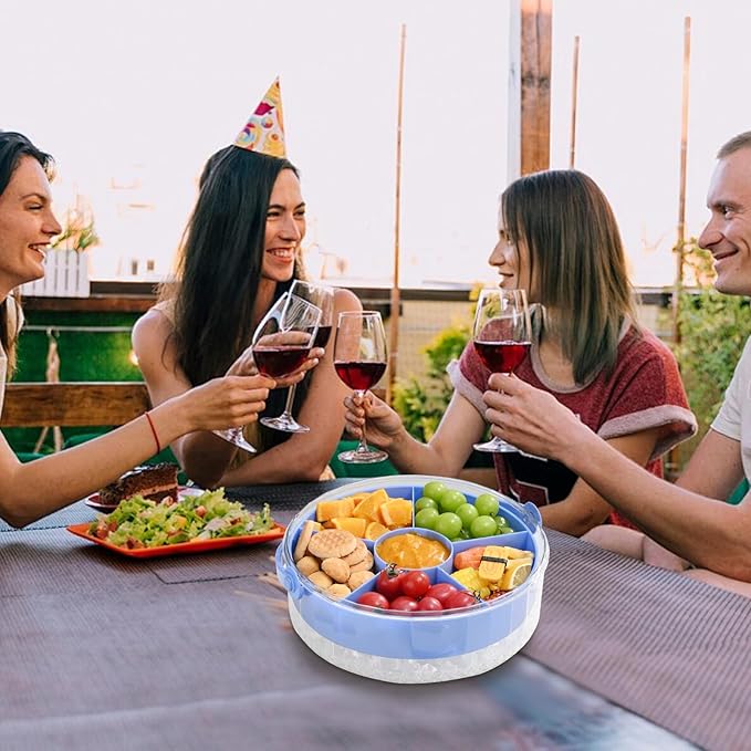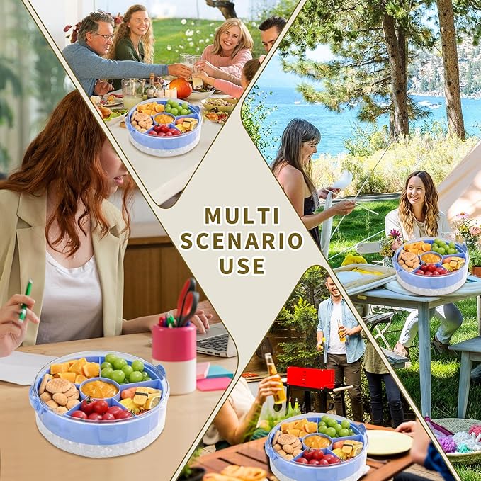 Divided Chilled Serving Tray for Parties,Ice Chilled Party Platter,Ice Serving Bowl with Lid and Handle,Charcuterie Serving Board,Cold Dish Dip for Fruit Seafood Vegetable Shrimp Cocktail Appetizer...