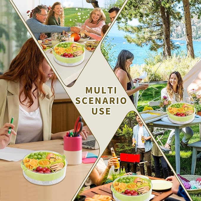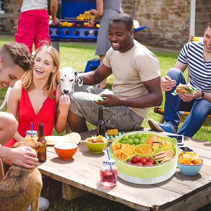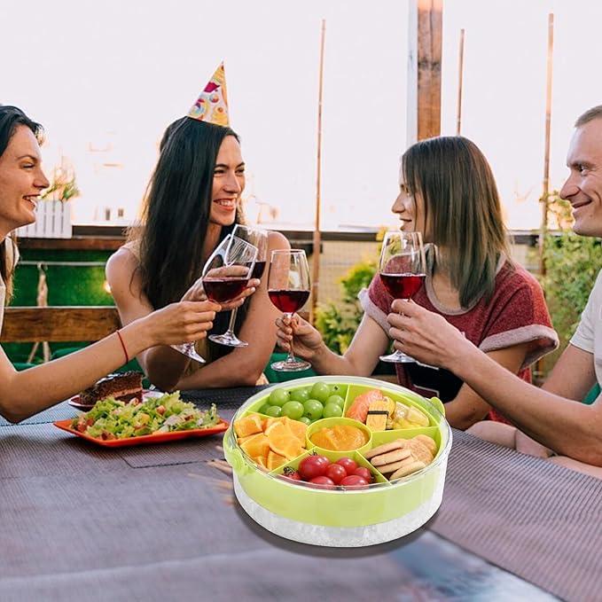 Fruit Ice Divided Serving Tray with Lid and Handle,Chilled Veggie Tray,Shrimp Cocktail Serving Dish,Ideal Cold Chilled Serving Platter for Parties,for Vegetables,Appetizer,Salads,Picnic,Road Travel