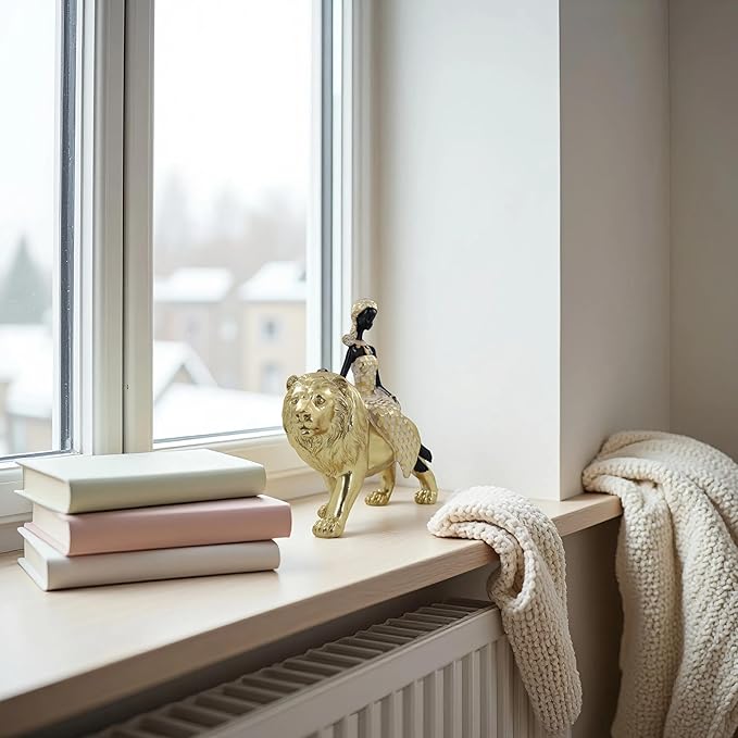 - Durable & Elegant Resin – Crafted from high-density resin, this sculpture is solid yet lightweight, with fine details in the lion's mane and the woman's attire that showcase refined craftsmanship.