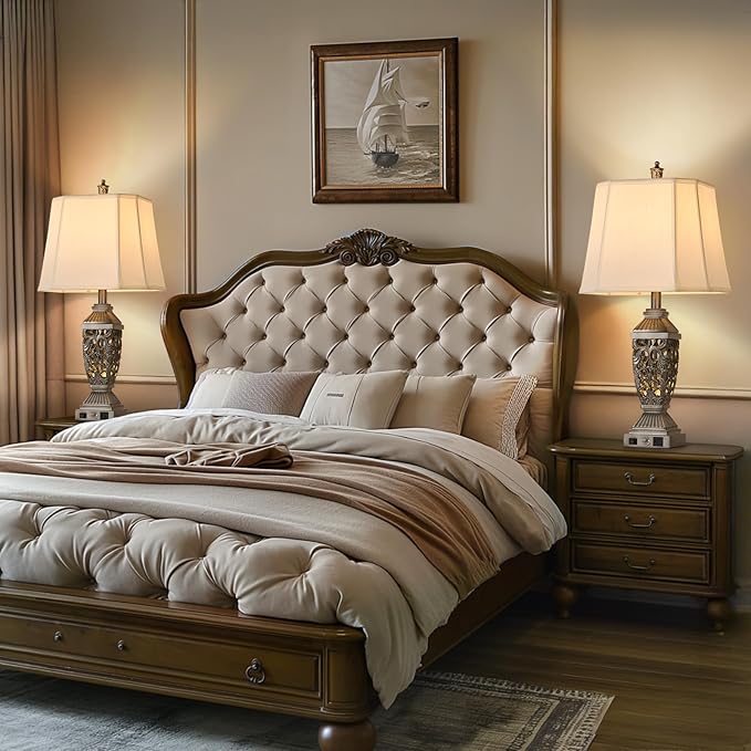 - Industrial Vintage Aesthetics: This table lamp combines timeless vintage elegance with modern functionality. The beautifully carved base and neutral linen lampshade make it an eye-catching piece in any room, whether placed in a bedroom, living room, or office. The rustic design enhances the aesthetic appeal of your space, creating a warm and welcoming atmosphere with soft, ambient light. The unique craftsmanship and quality materials ensure that this lamp will be a standout piece in your home decor for years to come.