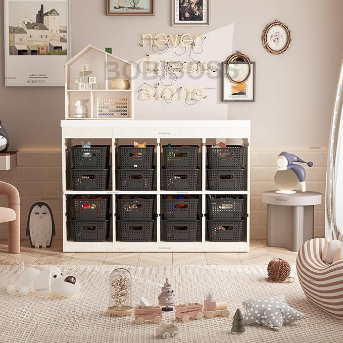 - EASY-GRIP CARRY HANDLES: Built-in handles on these black plastic storage baskets make carrying and transporting contents a breeze, perfect for playroom bathroom organization and storage, moving pantry baskets, or quick closet access