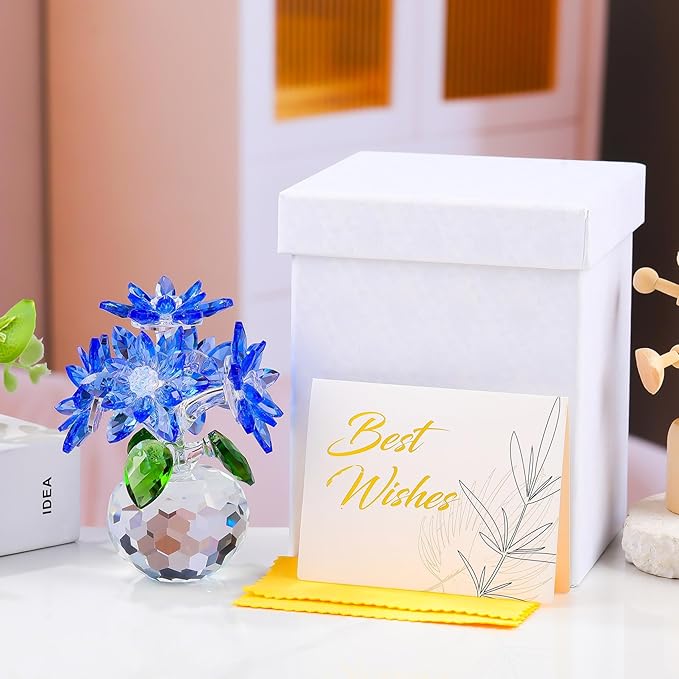 Enjinkail Handmade Crystal Daisy Figurine - Blue Glass Flowers Gifts for Women, Elegant Home Decor & Table Centerpiece