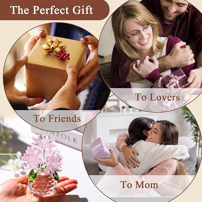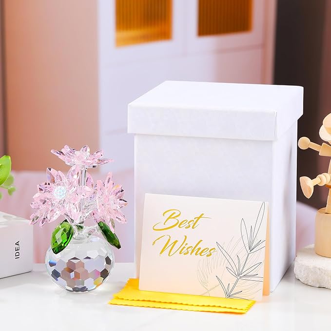 Enjinkail Handmade Crystal Daisy Figurine - Pink Glass Flowers Gifts for Women, Elegant Home Decor & Table Centerpiece