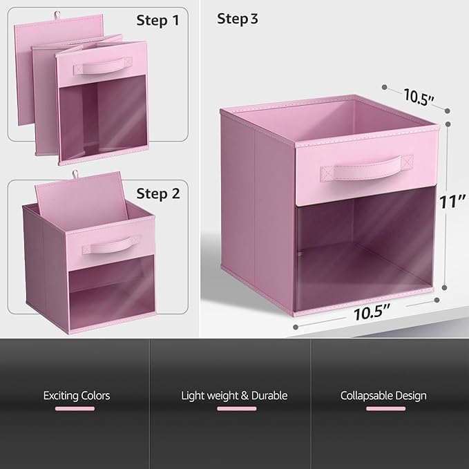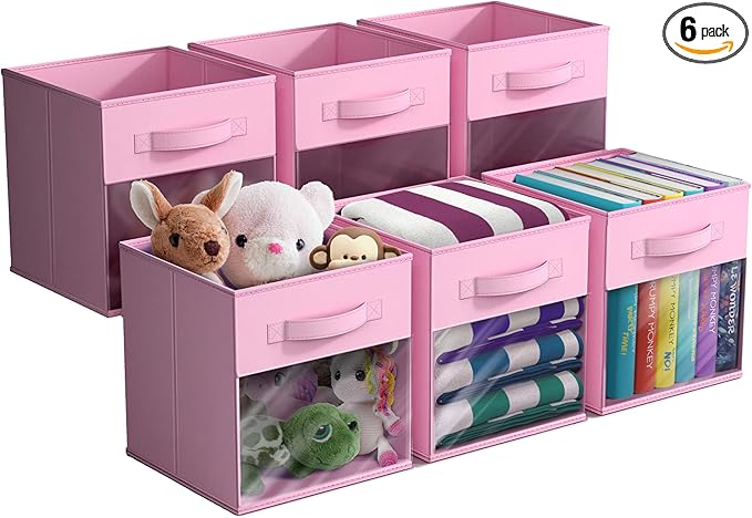 Sorbus 11 Inch Storage Bins with Clear Window - 6 Foldable Baskets for Organizing Clothes, Toys, Books - Sturdy Collapsible Fabric Storage Cubes with Handle - Storage Baskets for Shelves, Closets