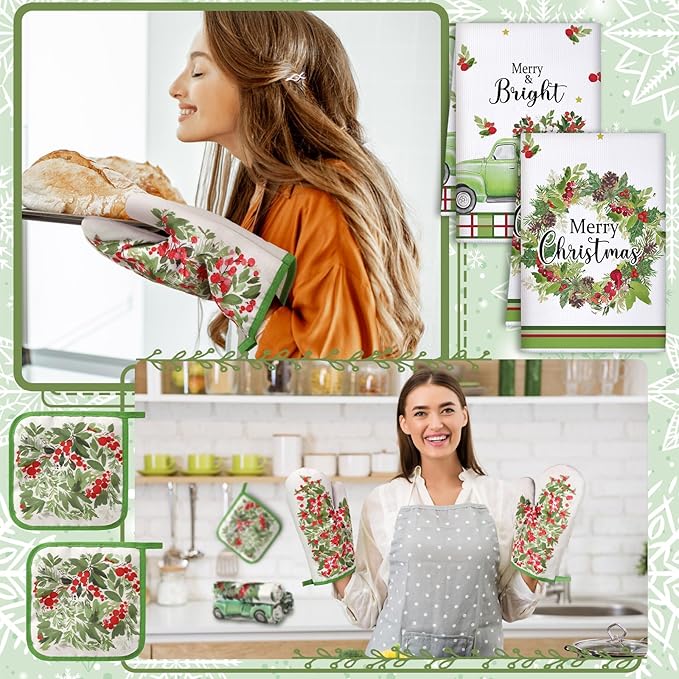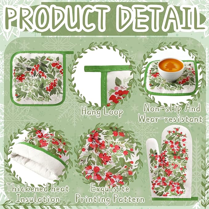 - Comprehensive Package Includes: our package includes 2 Christmas placemats, 4 absorbent kitchen towels, 2 pot holders and 2 oven mitts, providing abundant quantity and aesthetic style for decorating the kitchen to meet your cooking needs