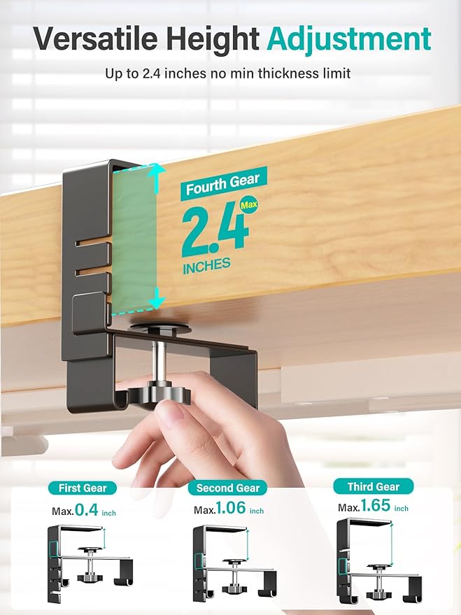 - Unique Design Management - Our cable management tray fits desk thicknesses ranging from 0.4 to 2.4 inches, ensuring compatibility with metal, wood, or glass surfaces. Furthermore, the cable management box features a scratch-resistant pad that safeguards your desktop from clip damage, making wire organization effortless.