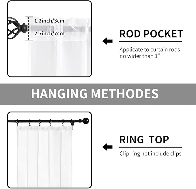 - Easy to Care: These airy and breathable sheer curtain panels are machine washable in cold water, Do not bleach. And tumble dry low and warm iron when needed.