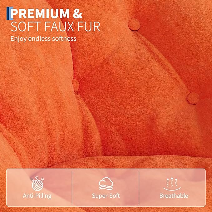 Comfy Saucer Chairs, Folding Reading Lounge Chair, Cozy Faux Fur Living Room Chair with Soft Thick Padded Seat & Metal Frame, Modern Style Bedroom Home for Kids Adults, X-Large, Orange