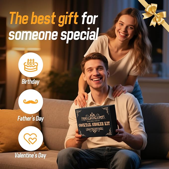 - 【Gift】: The Electric Whiskey Smoker Kit comes in a high-quality gift box with a sponge lining, making it the perfect gift for whiskey lovers, cocktail enthusiasts, and home chefs. It’s great for birthdays, Christmas, Father’s Day, anniversaries, or housewarming gifts for men, fathers, and husbands. Includes 1 electric smoker, 6 wood chips, cleaning brush, spoon, USB charging cable, and user manual.