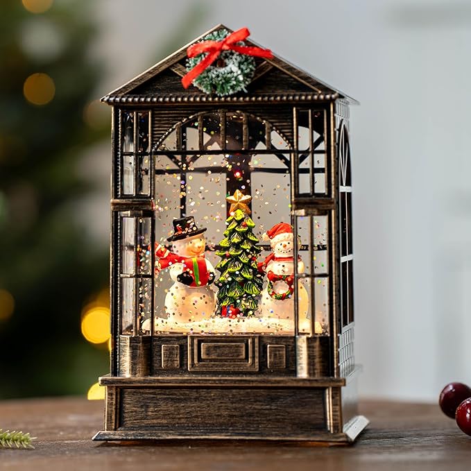 Christmas Snow Globe, Lighted Snowman Christmas Tree Scene, Musical Snow Water Lantern Swirling Glittering Holiday Decoration and Gift for Family Children or Friends