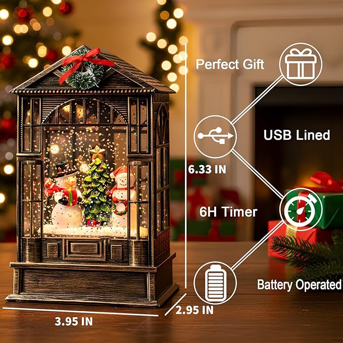 - Well Constructed: The frame of the snow globe lantern is made of Acrylic and ABS material, constructed with high quality plastic and promising long-time durability. The details and lights are very beautiful.
