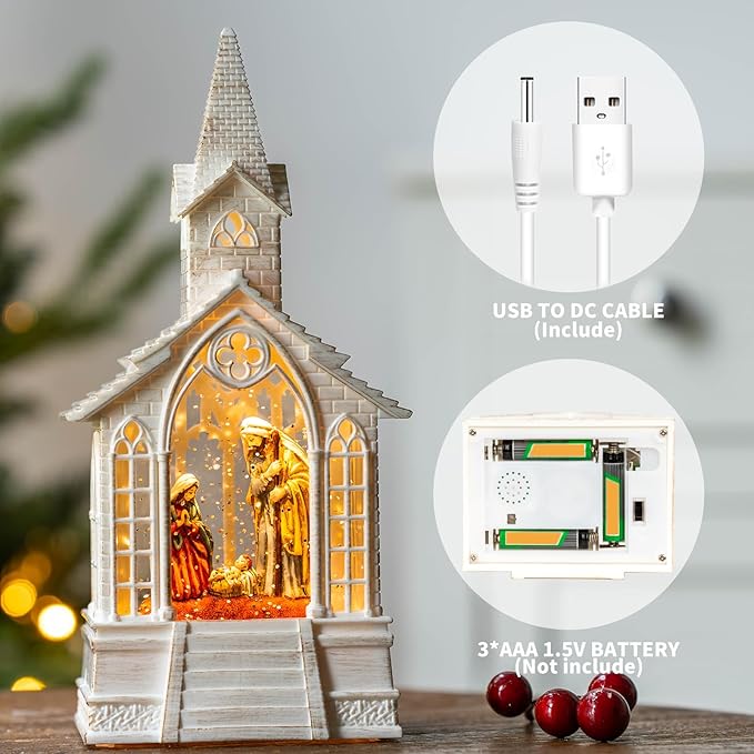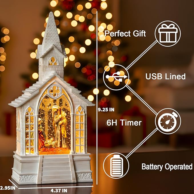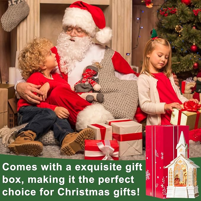 Christmas Snow Globes Church Nativity Water Lantern,Silent Night Music, Holiday Decorations Gifts for Family Children or Friends