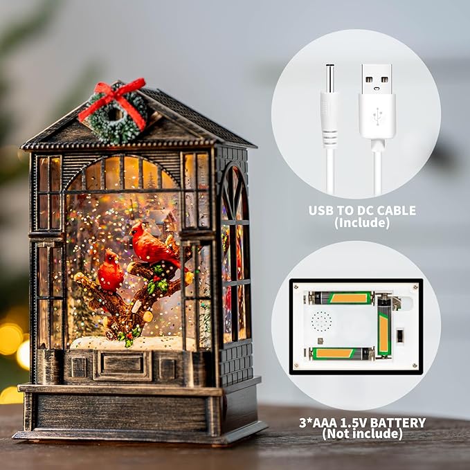 Christmas Snow Globes Cardinal Music Water Lantern Holiday Decorations Gifts for Family Children or Friends