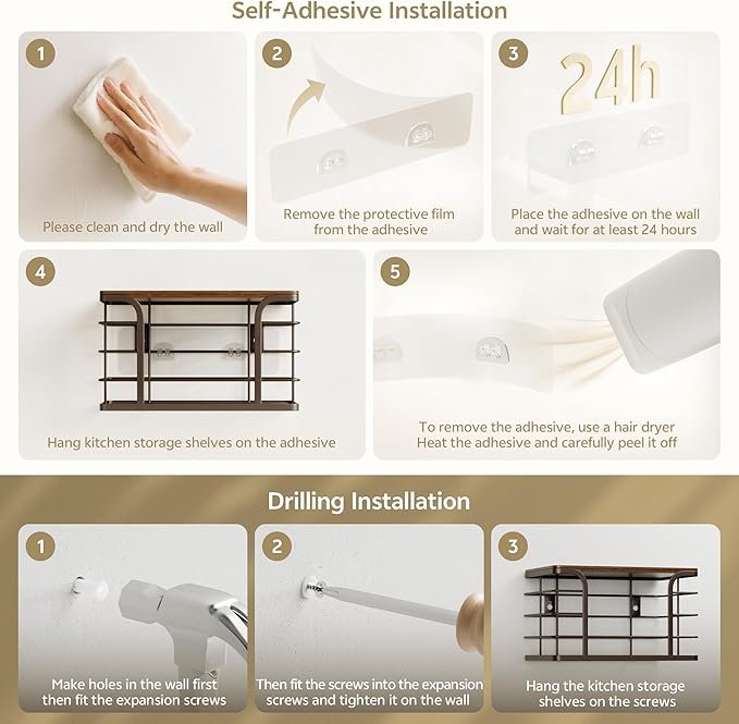 - 3 Versatile Options for Use: Use as a countertop organizer, wall mount with included adhesive strips (wait 24 hours post-install, for smooth hard walls), or drill-mount with provided accessories. Fits any home storage setup—laundry room, kitchen, or pantry