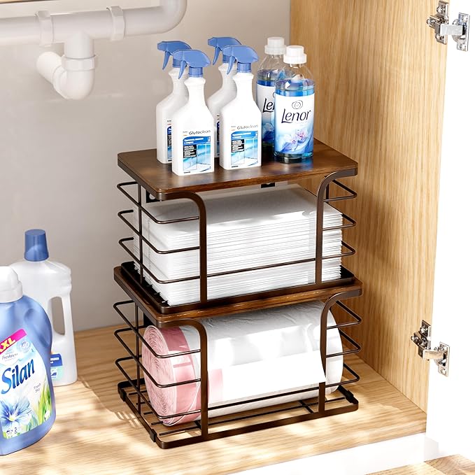 - Easy Access & Space-Saving: A wide front opening makes grabbing bags a breeze. The stackable bamboo top maximizes vertical space, fitting neatly on countertops, in cabinets, or under sinks. Store laundry supplies, produce, snacks, and more—great for kitchen organizers and storage