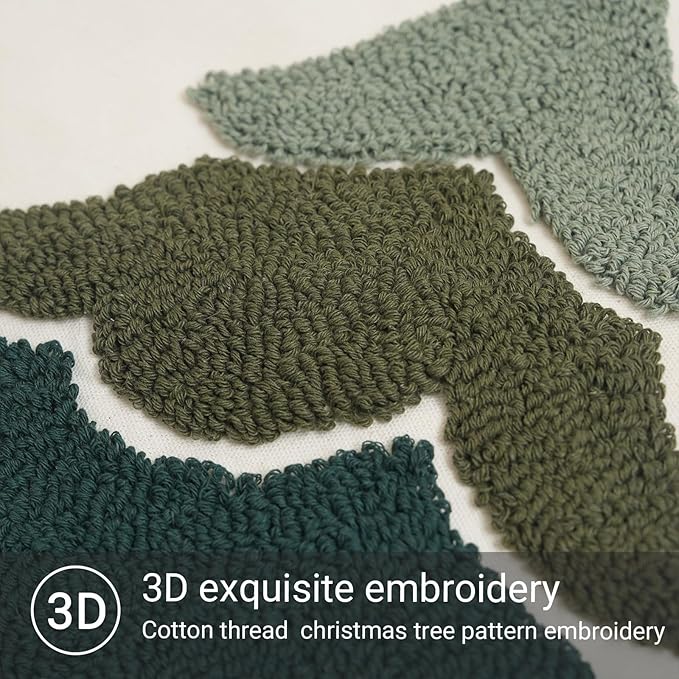 GEEORY Christmas Pillow Covers 18x18 Inch, Embroidered Xmas Tree Throw Pillows Farmhouse Winter Holiday Decor Cushion Case for Sofa & Bed Home Decorations (Green) GX003-1-18