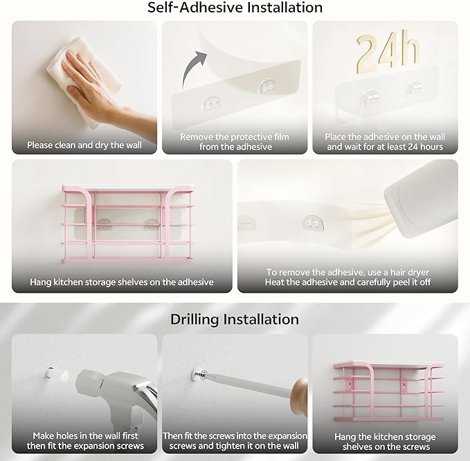 - 3 Versatile Options for Use: Use as a countertop organizer, wall mount with included adhesive strips (wait 24 hours post-install, for smooth hard walls), or drill-mount with provided accessories. Fits any home storage setup—laundry room, kitchen, or pantry