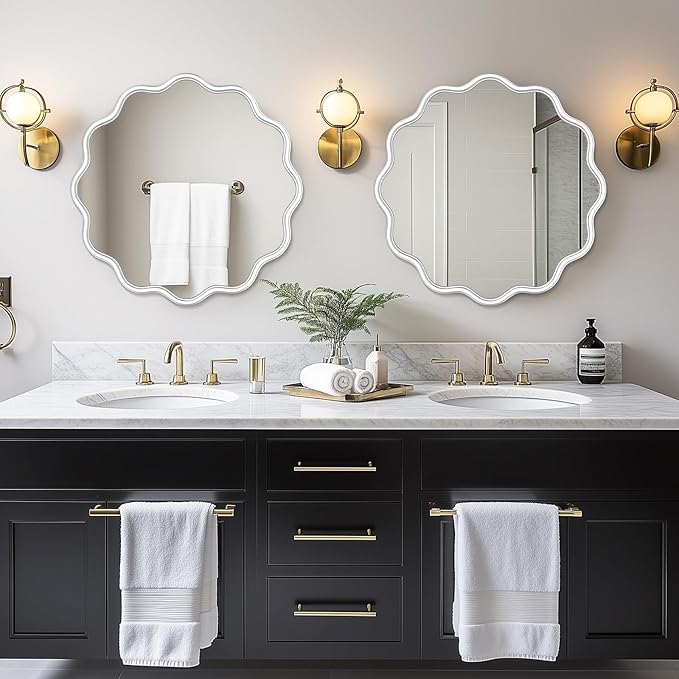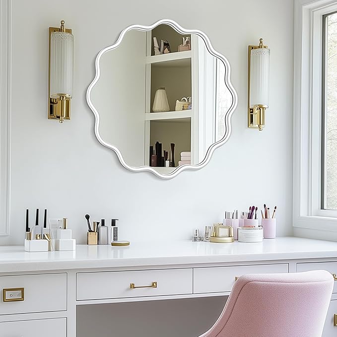- 【Modern Simple Style Decorative Mirrors】: The round wavy frame mirror with its modern decorative, it can be used in a variety of scenarios, suitable for bathroom upgrades, hotels, vanity, farmhouse, bedroom, living room, dining room, entryway, fireplace, corner