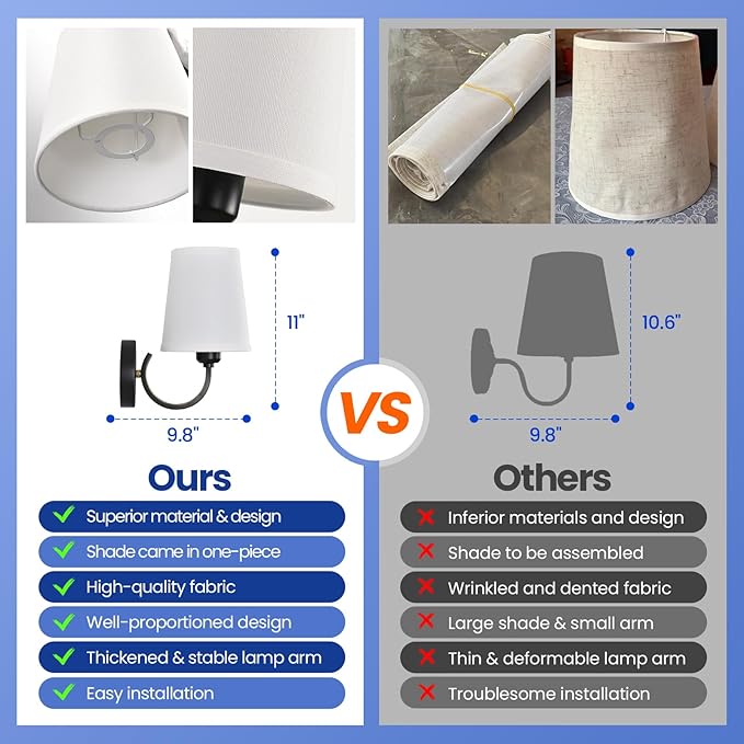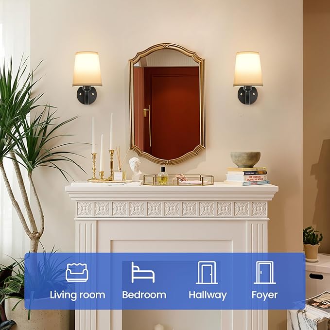 - [Indoor Wall Lamp Decoration]: Featuring a matte metal body and a white fabric shade, the modern style and simple design of the black and gold wall light fixtures create a comfortable and warm atmosphere. This is the ideal choice for your home lighting and decoration