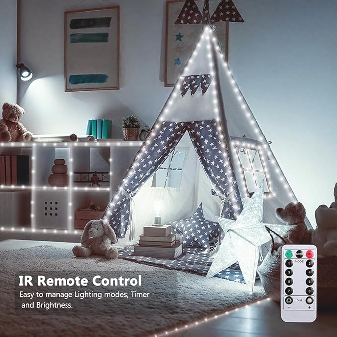- IR Remote & Button: Conveniently manage the string lights battery operated via IR remote or button, easily adjust Lighting modes, Brightness levels and Timer.