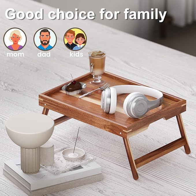2 Pack Acacia Wood Bed Tray Table with Folding Legs,Breakfast Trays,Serving Tray for Food and Snack,Laptop Trays for Working(Natural)