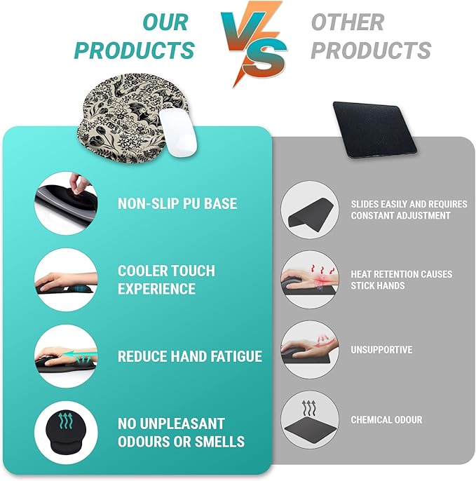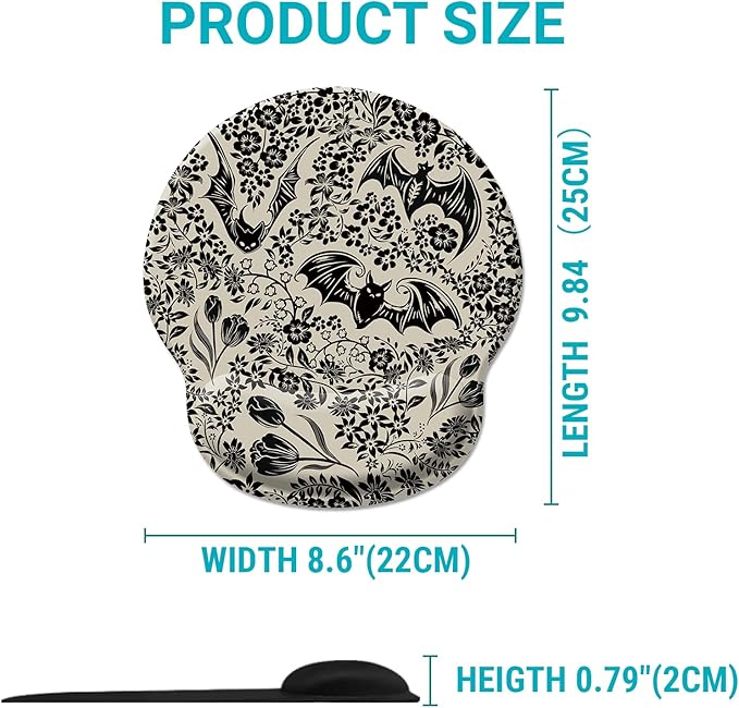- Novelty Mouse Pad: This funny mouse pad with wrist rest features a goth bat floral flower pattern design, which will bring you more happiness while working, studying or playing. The mouse pad for desk also fits all types of desktop, keyboard, laptop and wireless computer mouse