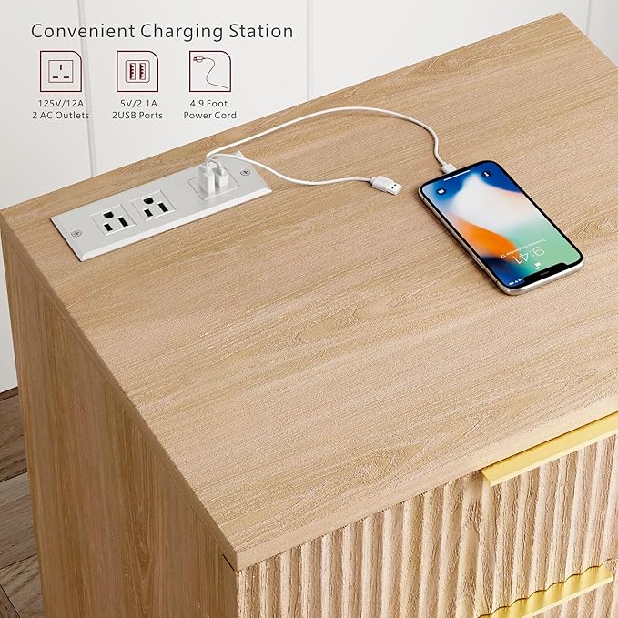 - Multi-Port Fast Charger Nightstands: This modern nightstand features a built-in charging station with 2 USB ports and 2 AC outlets - simultaneously power your iPhone, iPad, Apple Watch, and other devices. The perfect bedside charging solution to keep all your essentials fully powered overnight.