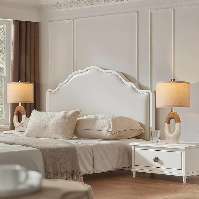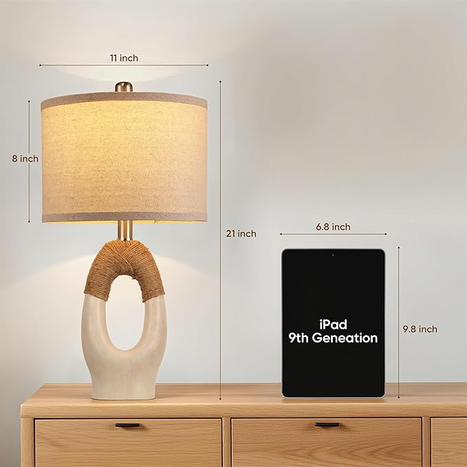 - Farmhouse Elegant Design: Bring cozy, rustic charm into your home with lamps for nightstands. Featuring a premium resin base wrapped in natural rope, the classic farmhouse design blends seamlessly with rustic decor styles. The soft fabric shade casts a warm, inviting glow that highlights the lamp's artisanal textures. Perfectly paired with wooden furniture and vintage accents, these lamps add a touch of countryside comfort to any living room or bedroom—an effortless way to elevate your farmhouse aesthetic.