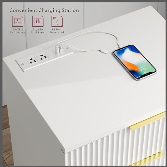 - Multi-Port Fast Charger Nightstands: This modern nightstand features a built-in charging station with 2 USB ports and 2 AC outlets - simultaneously power your iPhone, iPad, Apple Watch, and other devices. The perfect bedside charging solution to keep all your essentials fully powered overnight.