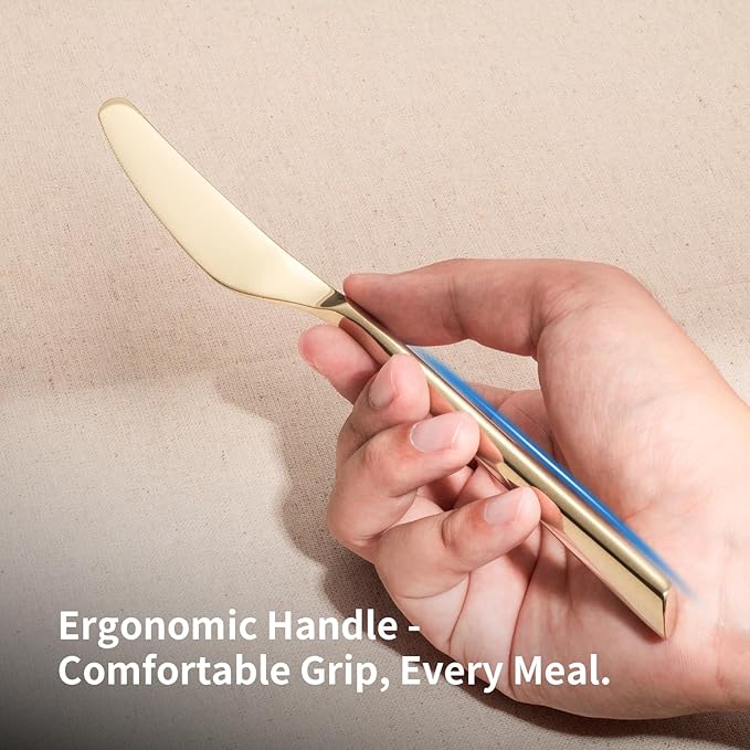 Alata Bailey Champagne Gold 20-Piece Forged Stainless Steel Flatware Set Cutlery Set, Service for 4, Silver Finish, Dishwasher Safe