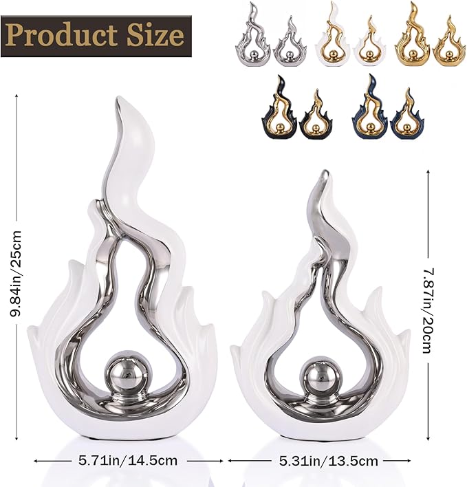 - Modern Abstract Art Design: Inspired by flowing flames, this sculpture features a dynamic silhouette paired with a reflective sphere for a striking focal point. Adds artistic depth as home decor accents, centerpieces for tables, or a coffee table figurine in any contemporary space.