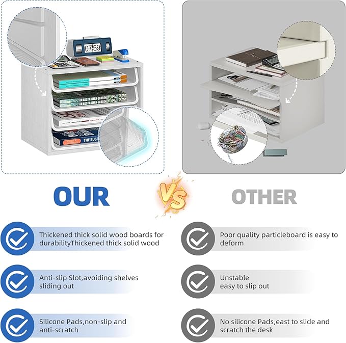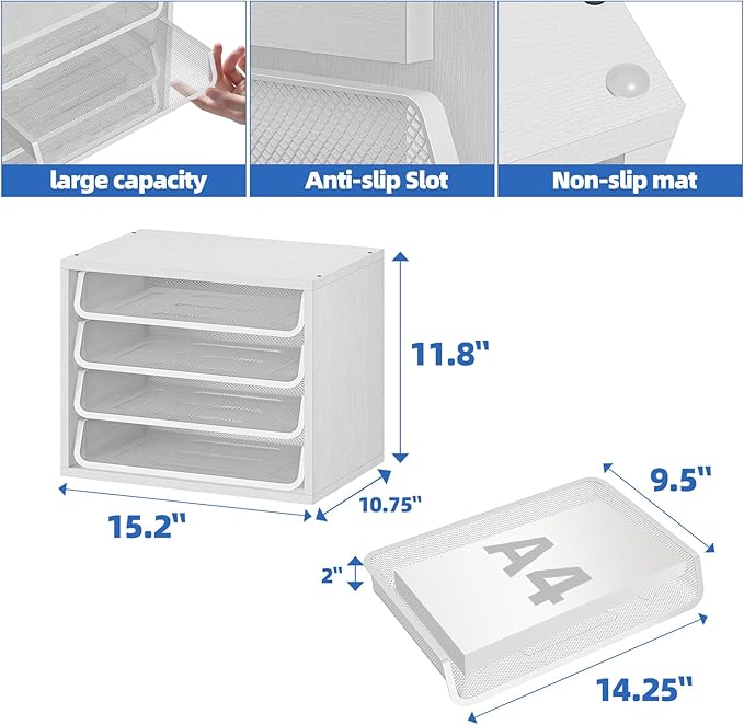 - Large Capacity Storage: This 4 tier organizer size:15.2" D x 10.75" W x 11.8" H, has a large capacity, perfect for neatly organizing documents, A4 papers, notebooks, emails, magazines and more, you can see at a glance what you're looking for, saving you tons of space on your desktop.