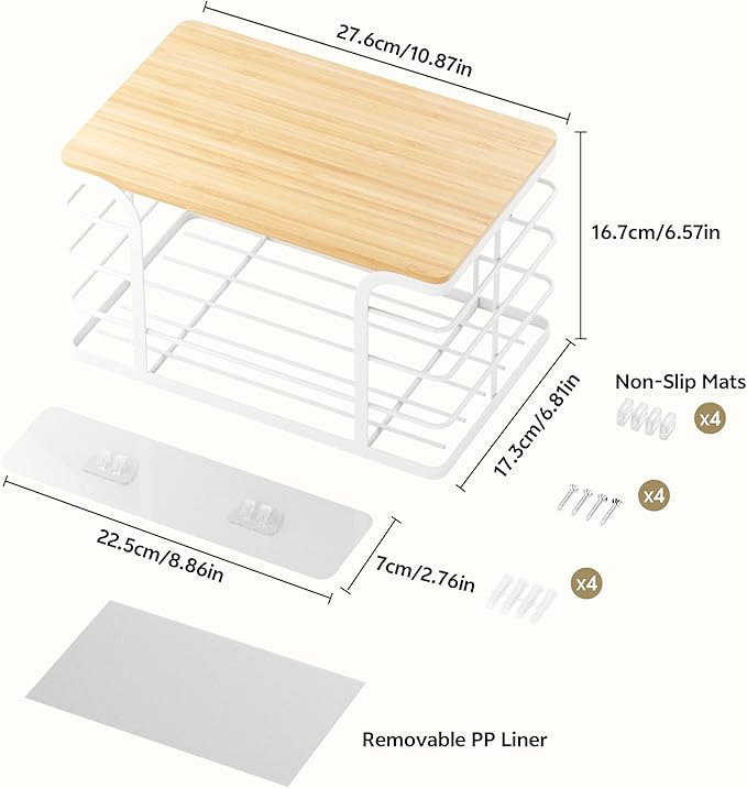 - Easy Clean & Stable Design: The bottom is equipped with a PP liner for protection, making it easy to quickly remove and clean. The non-slip rubber pads on the bottom keep the food storage shelf stable, preventing it from sliding and avoiding scratches on the tabletop
