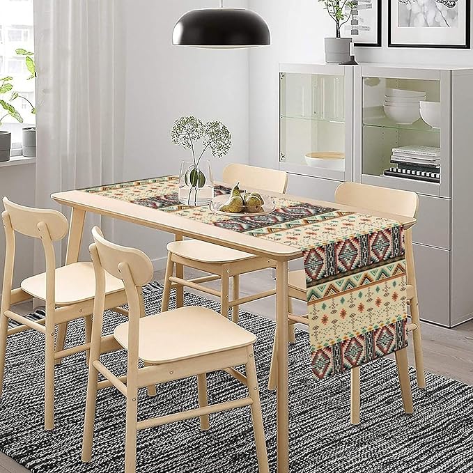 Native Aztec Table Runner, Tribal Style Southwestern Geometric Western Ethnic Style Table Dresser Scarves Table Setting Decor for Garden Farmhouse Dining Kitchen Table Decoration, 13x72 inches