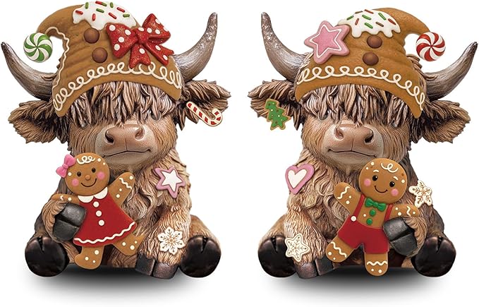 - Ideal Gift for Highland Cow Lovers: a thoughtful gift for someone who loves highland cows is definitely a good idea! This xmas calf resin handmade figurine is ideal for birthdays, holidays, or special occasions; It's the ideal gingerbread man highland cow decor gift that will delight anyone who appreciates the beauty of these gentle creatures