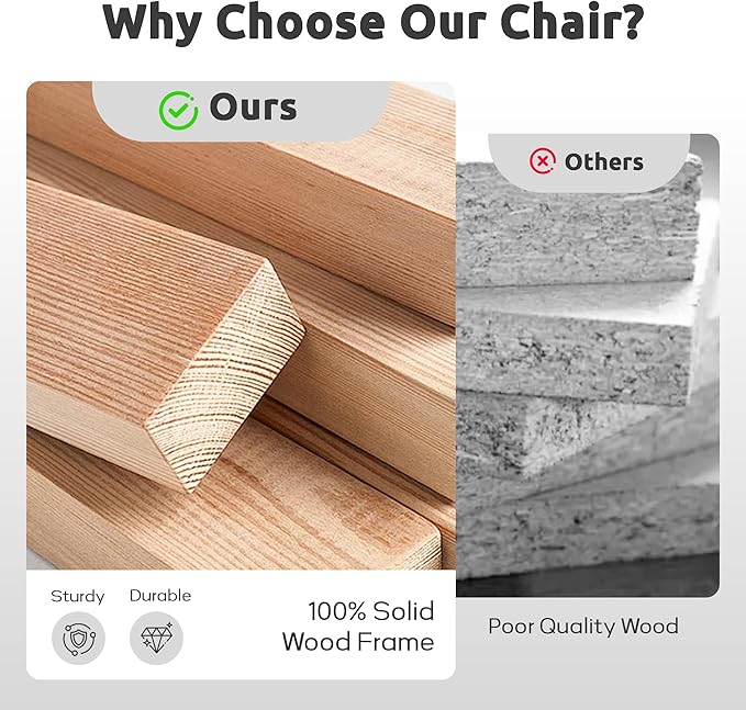 - Sturdy Wooden Frame:Designed with tapered birch wood legs and a solid internal frame, this relaxing chair offers lasting stability and support. Combined with high-resilience sponge, it withstands up to 350 lbs, ensuring long-term durability and everyday reliability.