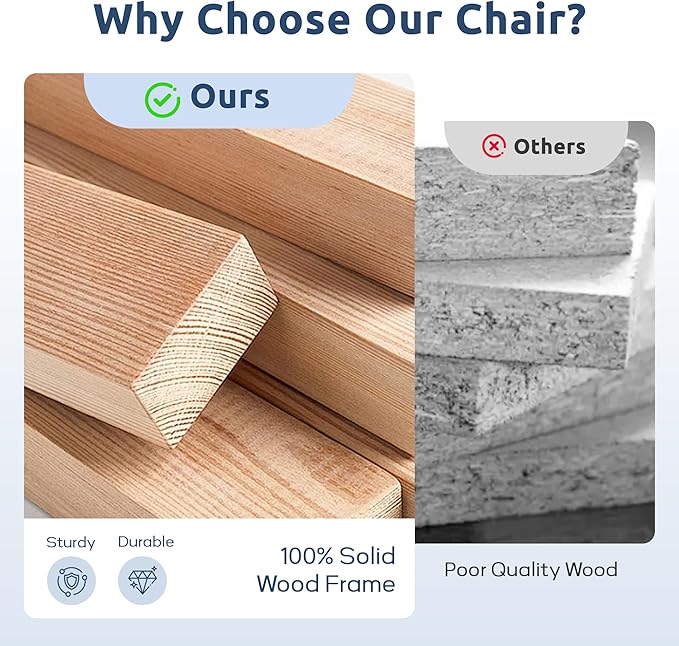 - Sturdy Wooden Frame:Designed with tapered birch wood legs and a solid internal frame, this relaxing chair offers lasting stability and support. Combined with high-resilience sponge, it withstands up to 350 lbs, ensuring long-term durability and everyday reliability.