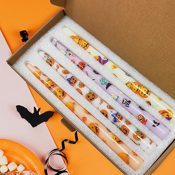 - 【Ideal for Home Decor and Party】 There are 4 colors in pink, purple, ivory, green to choice. These colorful tapers candles very suitable for various settings to add color, warmth, romance and festivity to any occasion, such as halloween, fall decoration, christmas, thanksgiving, wedding, and Dinner parties. These taper candles comes with a beautiful box, it's a beautiful gift for friends and family
