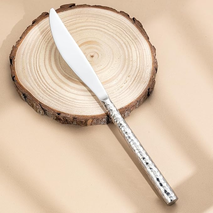- [360° Full Hammered Finish]: Every piece features meticulous hammered texture on ALL sides of the round handles, ensuring consistent artistry from every angle,Ergonomic Round Handles,Smooth, seamless contours designed for comfort—no sharp edges or corners like square handles. Fits naturally in palm for effortless grip.