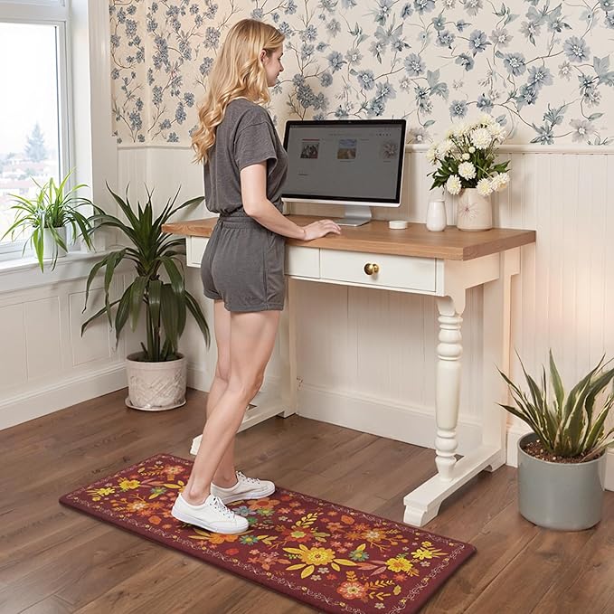 - Anti-Fatigue: Crafted with high-density memory foam mat, our kitchen floor rug delivers superior cushioning like built-in floor cushions for feet, knees, and back during long cooking sessions or as a standing desk mat. This ergonomic design significantly reduces joint pressure and fatigue while prepping meals, washing dishes, or working. Essential kitchen accessories and desk accessories for comfort in your home and kitchen. Say goodbye to tired feet