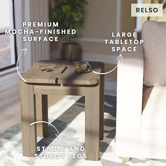Mocha Mango Wood Accent Table - Handcrafted Coffee Finish Side Table for Living Room, Bedroom, Entryway, Patio, Pool | Small Sofa Shelf, Plant Stand, Nightstand | Outdoor & Indoor use | Easy Assembly