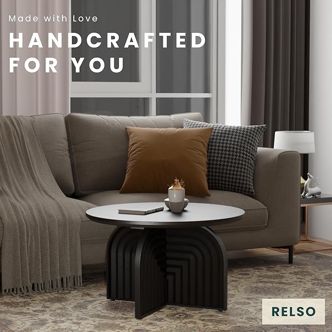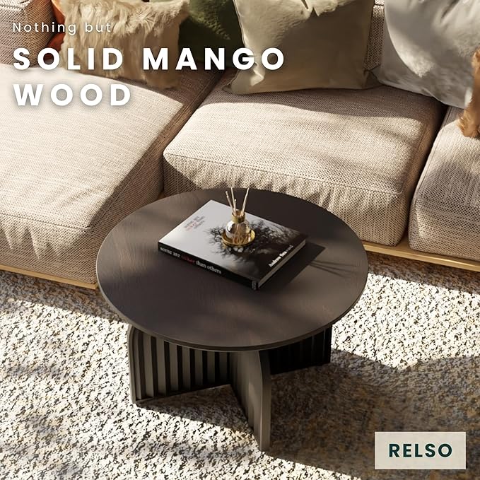 - [BUILT FOR LASTING STYLE AND STRENGTH]: Crafted from solid mango wood with a striking black finish, this round coffee table brings durability and timeless appeal to your space. Handcrafted design blends beautifully with modern, farmhouse, or boho interiors.