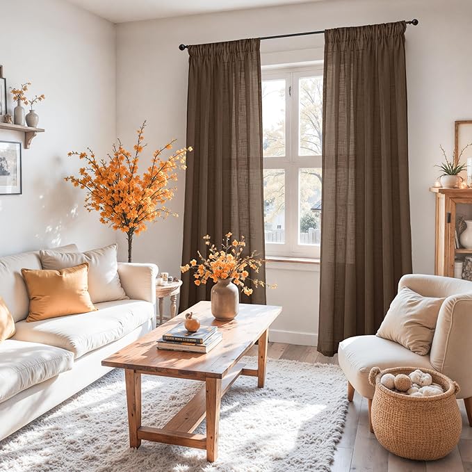 - Natural Linen Textured: Our linen sheer drapes are made from 20% natural linen and 80% polyester fabric which offer exceptional durability, excellent drape and wrinkle-free. Natural and rustic look that adds warmth and a sophisticated charm to any room, suitable for the living room, bedroom, farmhouse, dining room, office and any style space.