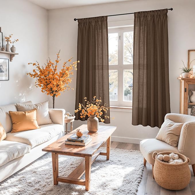 - Natural Linen Textured: Our linen sheer drapes are made from 20% natural linen and 80% polyester fabric which offer exceptional durability, excellent drape and wrinkle-free. Natural and rustic look that adds warmth and a sophisticated charm to any room, suitable for the living room, bedroom, farmhouse, dining room, office and any style space.