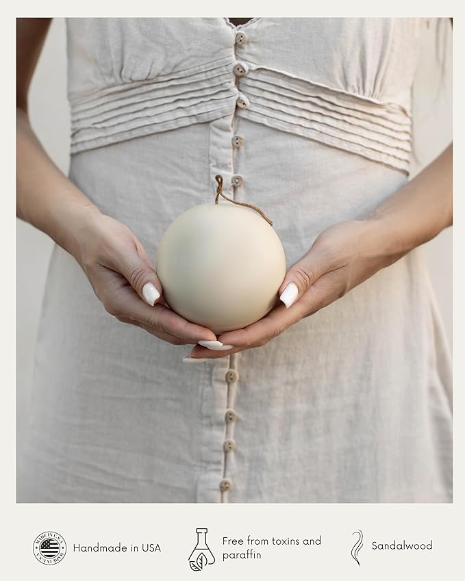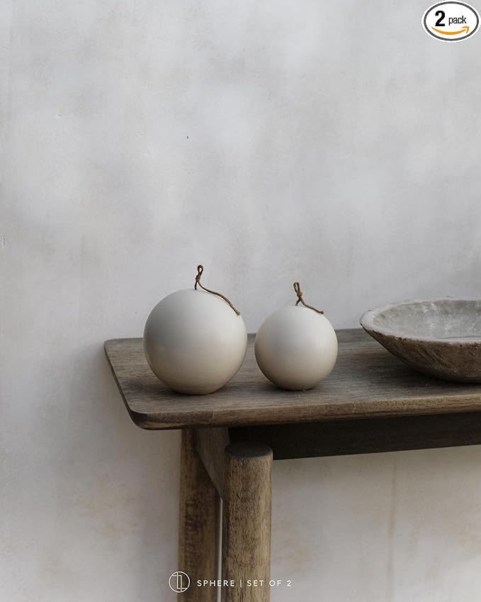 LAWA Sphere Set of 2 Candle - Beautiful Handmade Pillar Scented Soy Wax Elegant Aesthetic Candle Housewarming Gift Home Room Shelf Decor Idea (Light Beige, Set of 2)