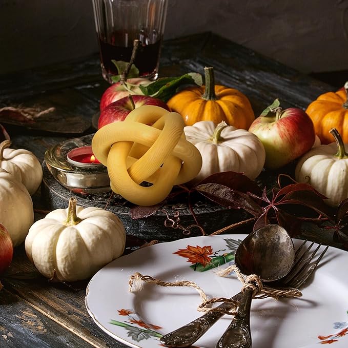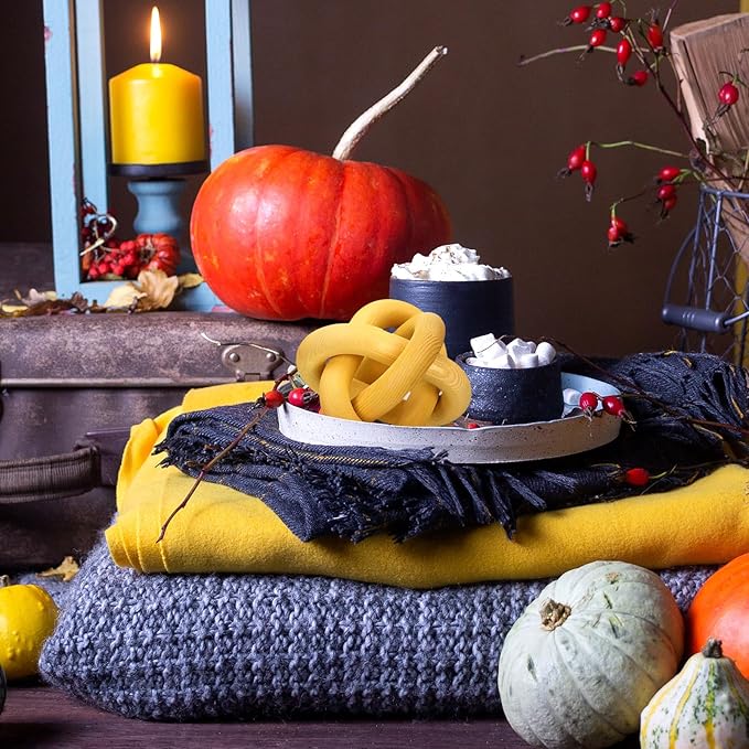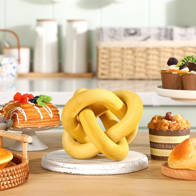 3 Link Wood Knot Decor - Hand Carved Coffee Table Decoration, Boho Chain Link Decor, Modern Shelf, Rustic Objects for Home Living Room Bedroom(Yellow)